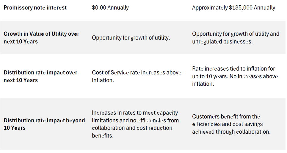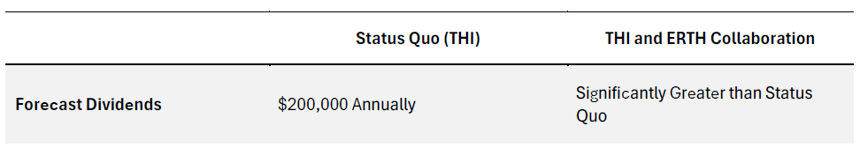 The table below provides a comparison if THI were to remain a stand-alone utility (status quo) or pursue a collaboration with ERTH Power.