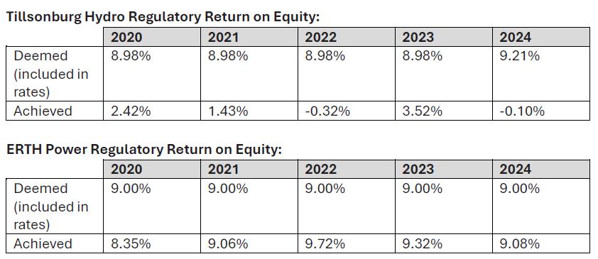 Tillsonburg Hydro and ERTH Power are both well-established electricity distribution companies in Ontario with very similar scorecard results. Tillsonburg Hydro has consistently not been able to meet its regulatory return on equity targets.