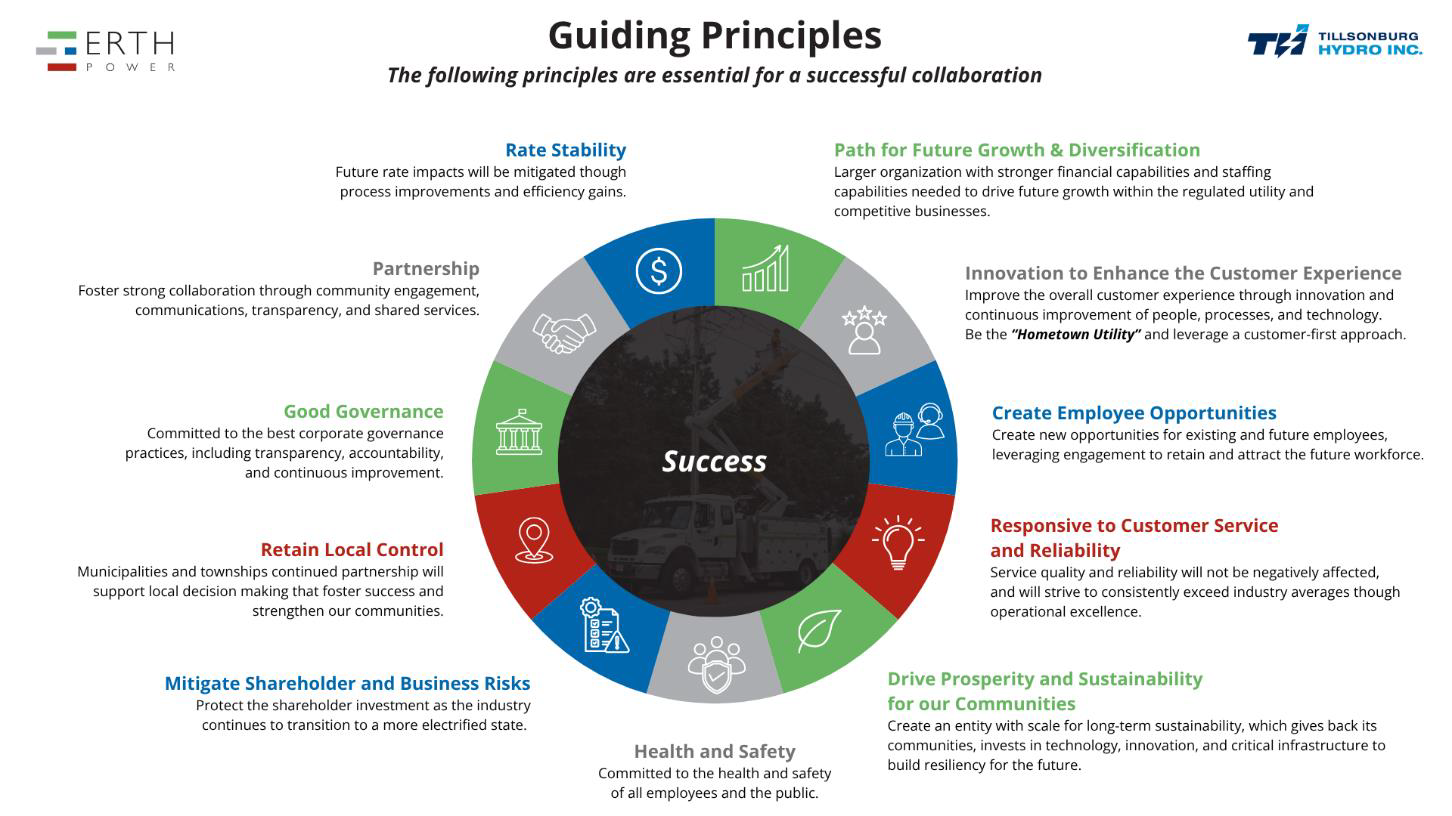Through this collaboration, the Town of Tillsonburg would become the second largest of 10 shareholders in ERTH Corporation. Tillsonburg Hydro would then join with ERTH Power under the ERTH Power brand, to form a stronger ‘Hometown Utility’ serving 33,000 customers across 16 communities.